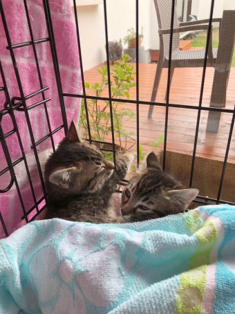 子猫達は怖がる事もなく無邪気に遊んだり、隣同士のケージの猫さんに手を出してみたりと とっても元気いっぱいでした。 疲れるとぐっすり(*^^*)