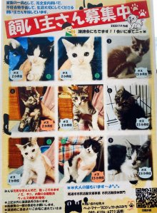 お問い合わせをいただいております月1回実施をさせていただいておりました ペットマナープロジェクトおのみちさんによる猫の譲渡会ですが、コロナが落ち着いて安心して皆さんに来て頂けるようになるまでこちらでの開催は見合わせておりますm(._.)m