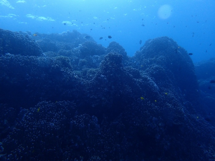 そしてほぼ20年ぶりにダイビングしました。いや〜やっぱり海は気持ちいいですね。あの、浮遊感を久しぶりに感じました。久しぶりに潜るので、ちょっと不安でしたが、やっぱり体が覚えているもんですね。ダイビングした場所は青サンゴの大群生で山のようにそびえ立つサンゴに感動しました。