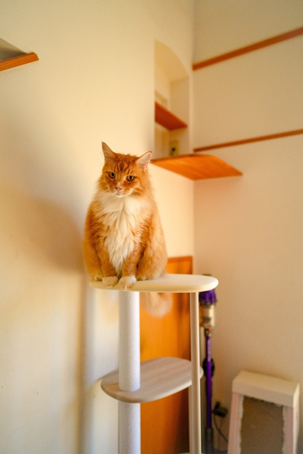 以前も一緒にいたことがあるので、猫の方は全然気にしてないんですが、犬たちがなんだなんだと集まってクンクンしてるので、ちょっとちゃー坊は嫌そうでしたが、3日ほど経つと、高いいい場所を見つけて、犬たちを見下ろしてご満悦な様子。