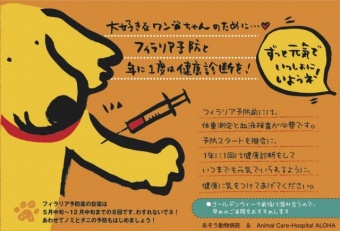 日々の診療が忙しくて、なかなかお知らせが送れていませんが、そろそろフィラリアの予防の時期になります。もうすぐ上のイラストのような葉書が届くと思います。