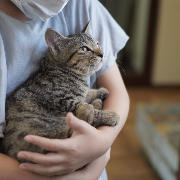 サバトラ猫 ののちゃん(仮名)、とっても気に入っていただき帰宅後にご家族で相談の結果!家族に迎えてくださる事になりました!! 良かったです!