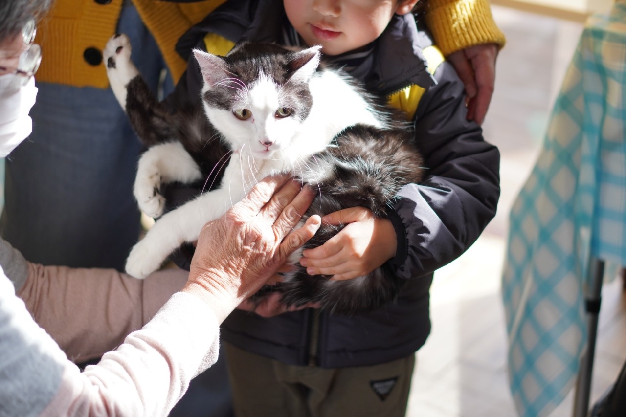 譲渡会では、気になる猫ちゃんを抱っこしてみたり、触れたりできます。