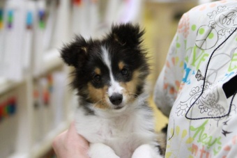 このとっても可愛いシェルティーの子犬は昨日退院した子です。遠方から主治医の先生の紹介で来院されました。