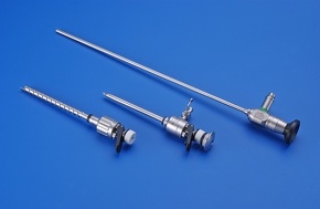 様々な腹腔鏡、硬性鏡のスコープや鉗子です。これでお腹や膀胱や鼻、耳の中を覗いたり、治療したり、バイオプシーといって細胞を採取したりの検査を行います。。